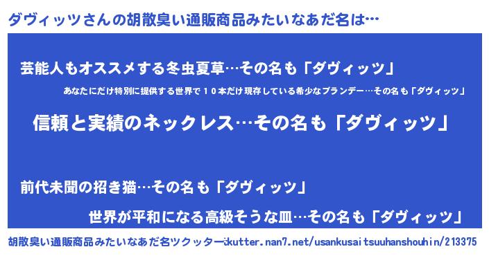 | 意味不明あだ名 | 『とにかく怪しいダヴィッツ』 |