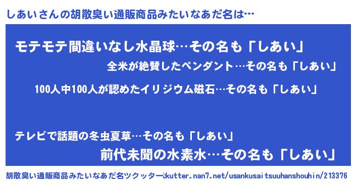 | ヘコむあだ名 | 『しあにゅー』『しあい(爆)』 |