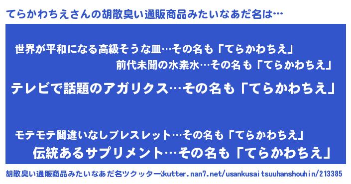| 意味不明あだ名 | 『自称てらかわちえ』 |