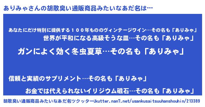 | 意味不明あだ名 | 『自称ありみゃ』『ありみゃフォーエバー』 |