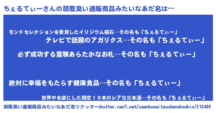 | ヘコむあだ名 | 『ちぇっふぃ~』『ちぇるてぃー(笑)』 |