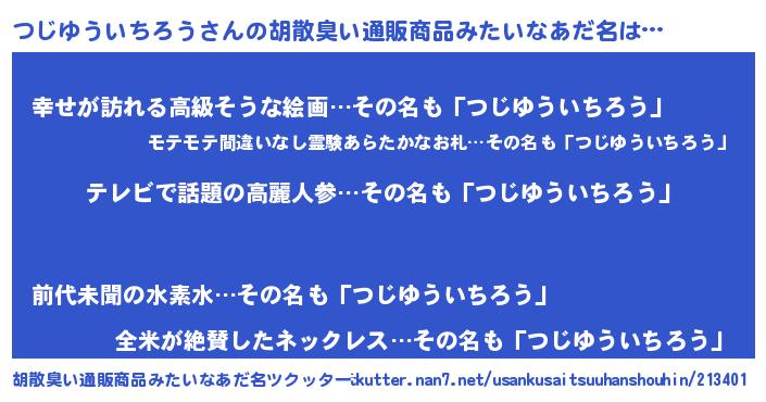 | 男性向けラノベタイトル風あだ名 | 『Re:つじゆういちろうから始める異世界生活』 |