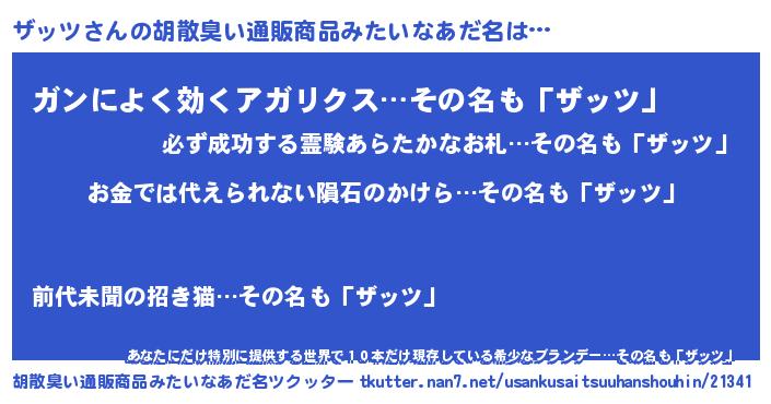 | ヒーロー風カッコイイあだ名 | 『慈愛の使者ザッツ』『超時空戦士ザッツ』 |