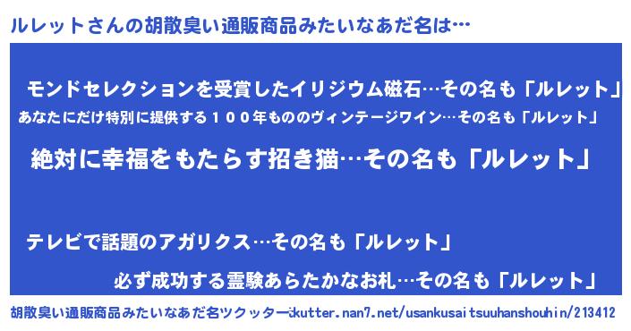 | ヘコむあだ名 | 『ルレット(笑)』『ルレにゅー』 |