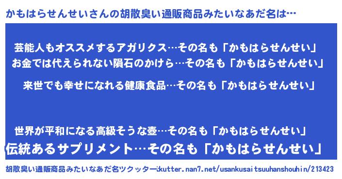 | ヘコむあだ名 | 『かもはらせんせい(笑)』『かもを』 |
