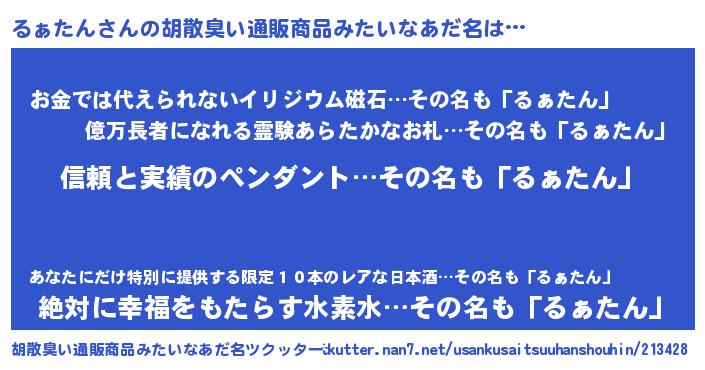 | ヒーロー風カッコイイあだ名 | 『暗黒騎士ルァ』『友情の使者るぁたん』 |