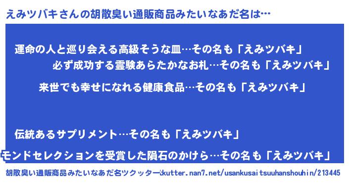 | 意味不明あだ名 | 『永久保存えみツバキ』 |