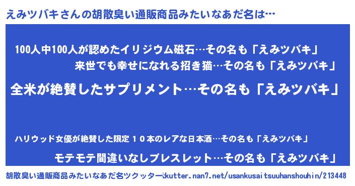 | 男性向けラノベタイトル風あだ名 | 『えみツバキの嫁は女の子じゃないと思った?』 |