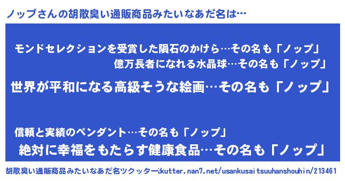 | ポケモン風あだ名 | 『ノップダネ』『ノックウザ』 |