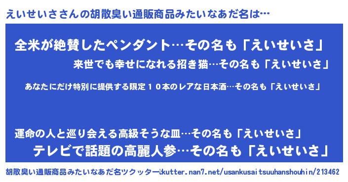 | 意味不明あだ名 | 『住所不定無職えいせいさ(43歳)』 |