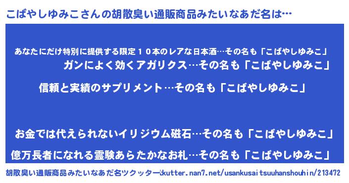 | 料理風あだ名 | 『こばやしゆみこごはん』 |