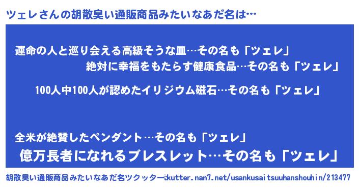 | ヘコむあだ名 | 『牛乳』『ツェっふぃ~』『ツェ太郎』 |