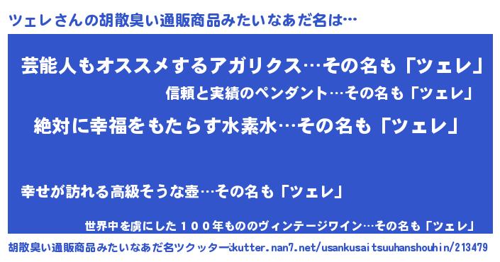 | 恥ずかしいあだ名 | 『ツェちん』『ツェレデラックス』 |
