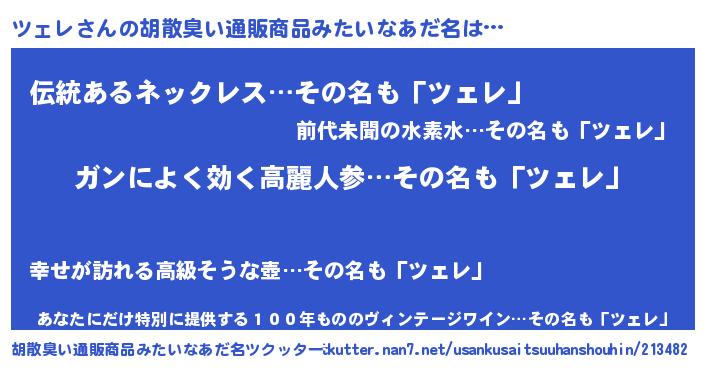 | 女子向けラノベタイトル風あだ名 | 『ツェレなんてお断りですっ。』 |