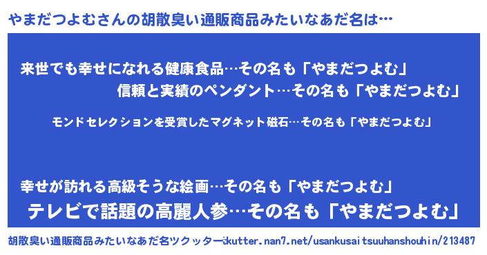 | ヘコむあだ名 | 『やまだつよむ(笑)』『やまっ子』 |