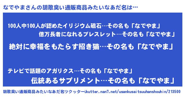 | 男性向けラノベタイトル風あだ名 | 『なでやまという概念が存在しない退屈な世界 』 |