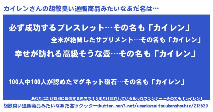 | 恥ずかしいあだ名 | 『カイっちょ』『プリティーカイレン』 |