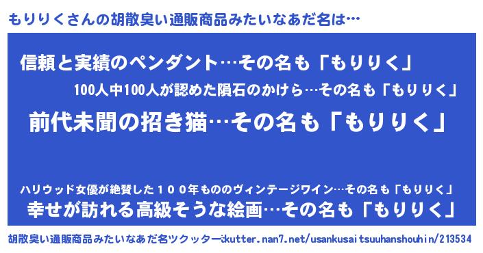 | 意味不明あだ名 | 『永久保存もりりく』 |