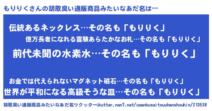 | ヘコむあだ名 | 『もりりく(震え声)』『もりっぺ』 |