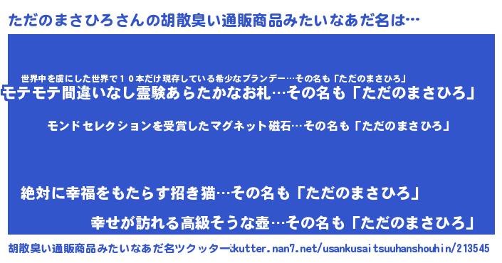 | ヒーロー風カッコイイあだ名 | 『慈愛の使者ただのまさひろ』 |