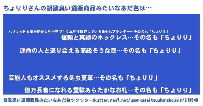 | 欧米人風あだ名 | 『ちょりりクリステル』 |