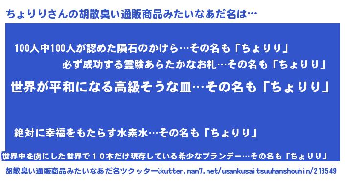 | 肩書あだ名 | 『ちょりりプロデューサー』 |