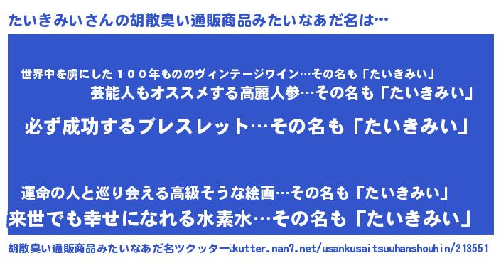 | ヘコむあだ名 | 『たいふぇ~』『たいきみい(笑)』 |