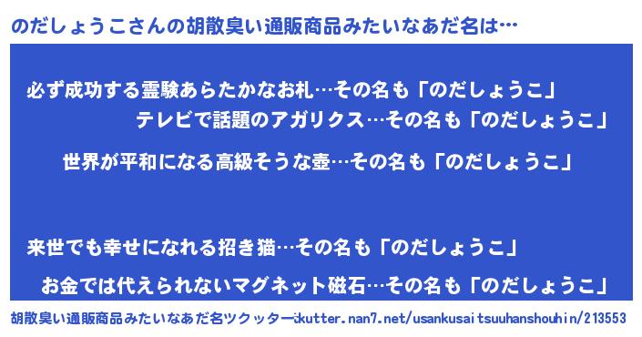 | 欧米人風あだ名 | 『アンジェラ・のだしょうこ』 |