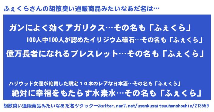| ヘコむあだ名 | 『ふぇにー』『ふぇくら(爆)』 |