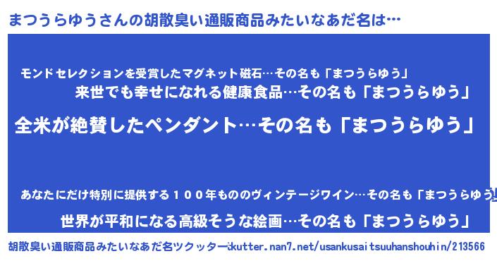| 肩書あだ名 | 『まつうらゆう上級大将』 |