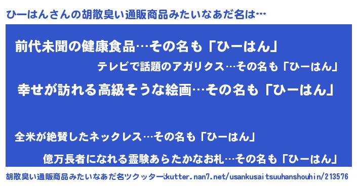 | 意味不明あだ名 | 『ひーはんフォーエバー』『自称ひーはん』 |