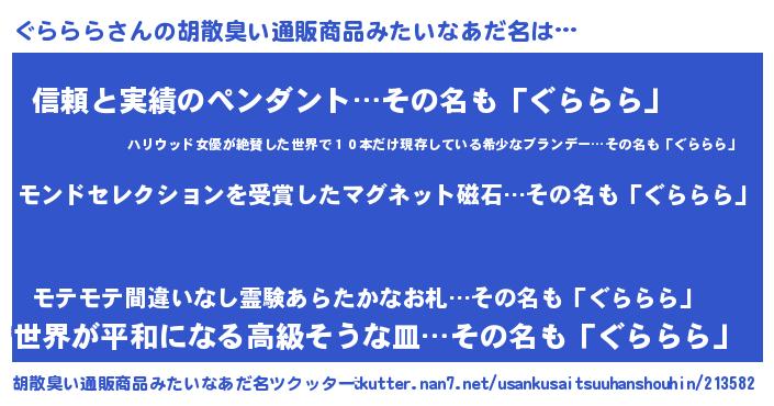 ぐらららさんの胡散臭い通販商品みたいなあだ名をツクッター!