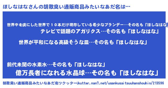 | 恥ずかしいあだ名 | 『ほしっちょ』『プリティーほしなはな』 |