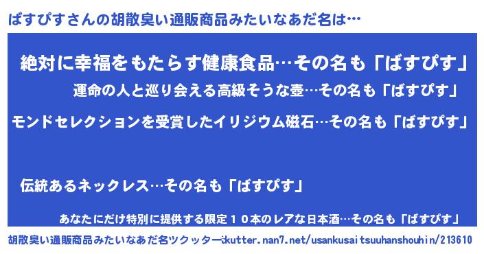 | ヒーロー風カッコイイあだ名 | 『天空の使者ばすぴす』『ネオバスピス』 |