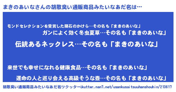 | 意味不明あだ名 | 『とにかく怪しいまきのあいな』 |