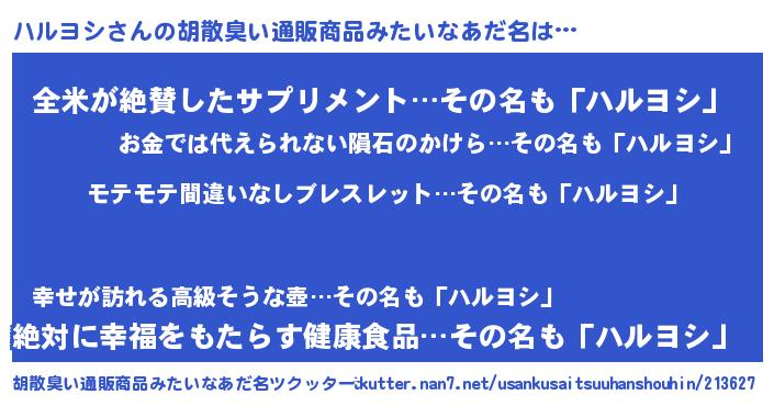 | ヘコむあだ名 | 『ハルにー』『ハルを』『豆乳』 |