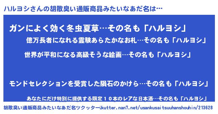 | 意味不明あだ名 | 『ハルヨシフォーエバー』『自称ハルヨシ』 |