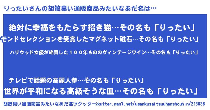 | 意味不明あだ名 | 『住所不定無職りったい(6歳)』 |
