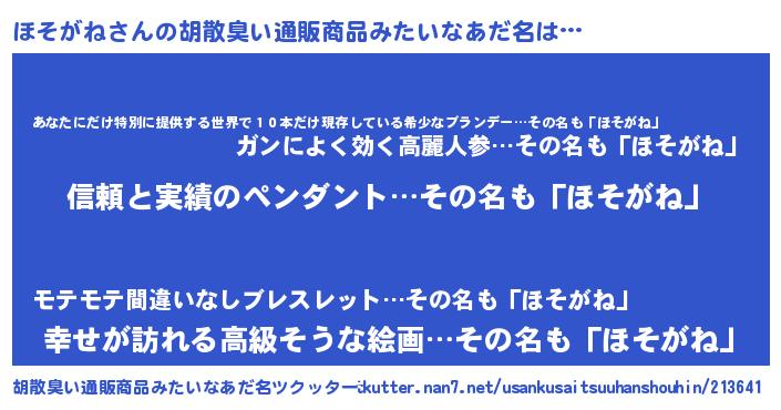 | 料理風あだ名 | 『ほそがねの豆乳スープ』 |