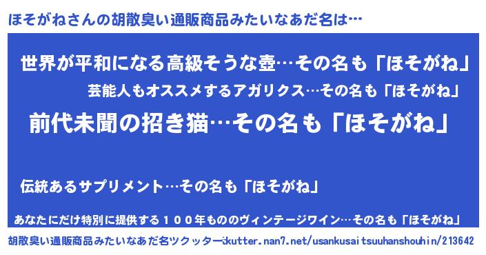 | ヘコむあだ名 | 『ほそがね(笑)』『レバニラ』 |