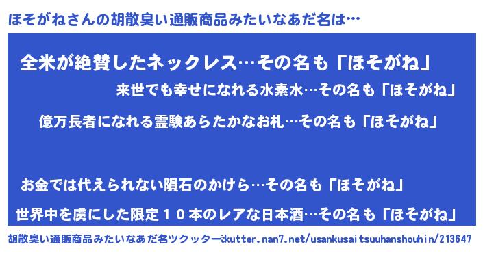 | ヒーロー風カッコイイあだ名 | 『スーパーホソガネ』『天弓騎士ホソ』 |