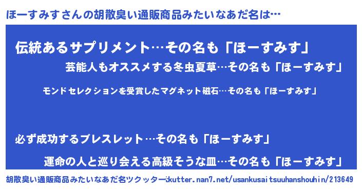 | 意味不明あだ名 | 『眠気覚ましガムほーすみす味』 |