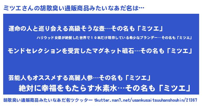 | 意味不明あだ名 | 『眠気覚ましガムミツエ味』『自称ミツエ』 |