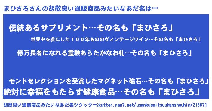 | 意味不明あだ名 | 『ペロリンまひさろ』『永久保存まひさろ』 |