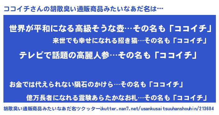 | ヘコむあだ名 | 『豆乳』『ココにゅー』『ココっ子』 |