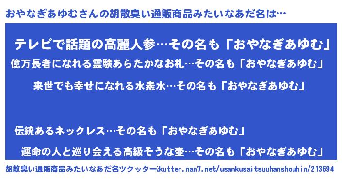 | 伝説のあだ名 | 『古より伝わる勇者おやなぎあゆむ』 |