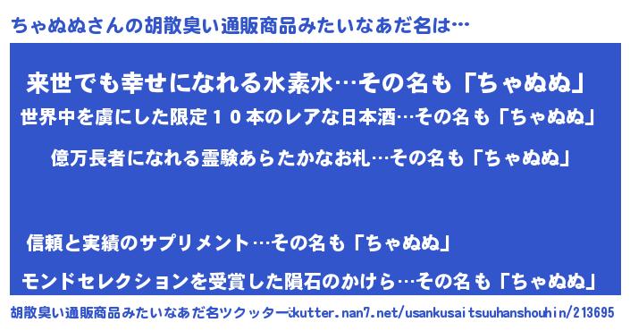 | 意味不明あだ名 | 『ペロリンちゃぬぬ』『永久保存ちゃぬぬ』 |