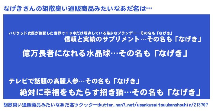 | ヘコむあだ名 | 『なげもー』『なげき(遠い目)』 |