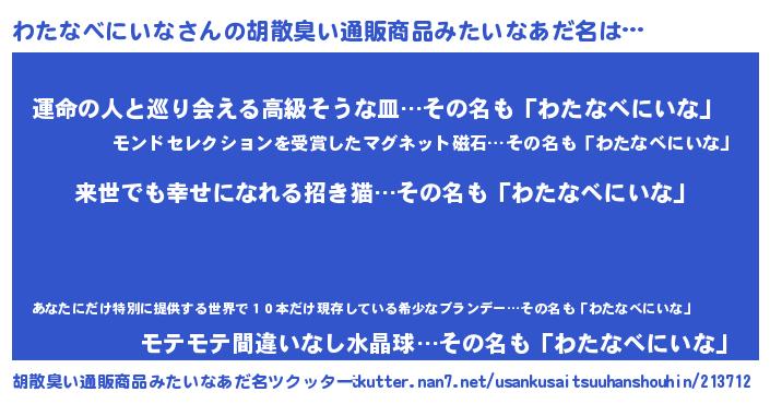 | 伝説のあだ名 | 『古より伝わる吟遊詩人わたなべにいな』 |