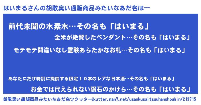 | ヘコむあだ名 | 『はいっふぃ~』『はいまる(震え声)』 |